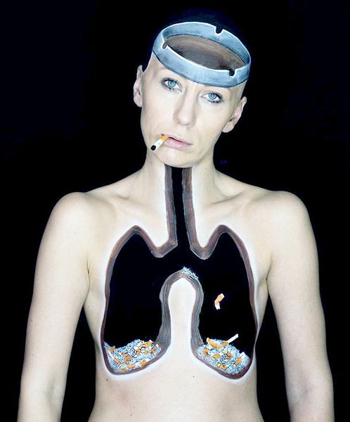 人体艺术家将自己画成烟灰缸 警示吸烟危害