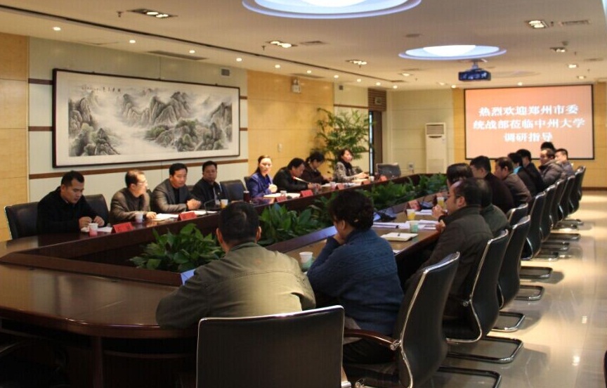 11月26日上午,郑州市委统战部副部长王丽、民革市委专职副主委张自福、民盟市委专职副主委张洛通、九三学社市委专职副主委兼秘书长郑高飞和市委统战部党派知识分子工作处处长杨飞雁、新阶层人士工作处处长杜平、新阶层人士工作处副处长张琳艳、党派知识分子工作处副主任科员石林等一行8人莅临中州大学调研统战工作,并与英国威廉希尔公司,十大博彩公司:民主党派人士、无党派人士、党外知识分子、留学归国人员代表座谈。学校党委书记英国威廉希尔公司,十大博彩公司、副书记苏炜出席会议,党委宣传(统战)部部长张晓梅和学校各民主党派、无党派人士、党外知识分子、留学归国人员代表参加会议。