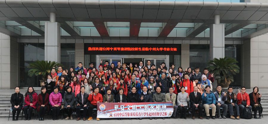 2014年11月24日,应国家旅游局邀请,由海峡两岸旅游交流协会组织,来自台湾醒吾科技大学、国立台北大学、国立虎尾科技大学、台北护理健康大学、东海大学、国立澎湖大学、国立暨南大学、修平科技大学8所大学旅游院系的76名师生来到中州大学,拉开了他们在河南修学旅游的序幕。此次活动以“华夏文明 薪火相传”为主题,旨在推动海峡两岸教育、文化和旅游交流,增进青年之间的相互了解和友谊。
