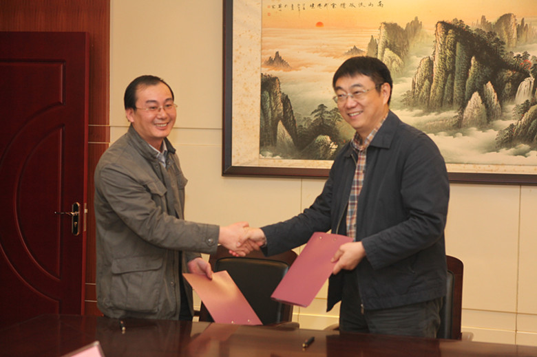 中州大学副校长薛培军与郑州教育电视台副台长张金庚代表双方签署合作协议