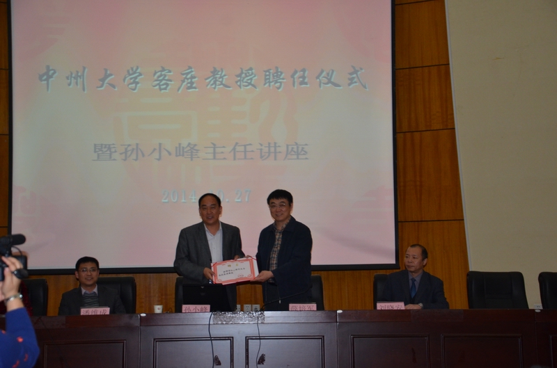 中州大学副校长薛培军向孙小峰主任颁发客座教授证书