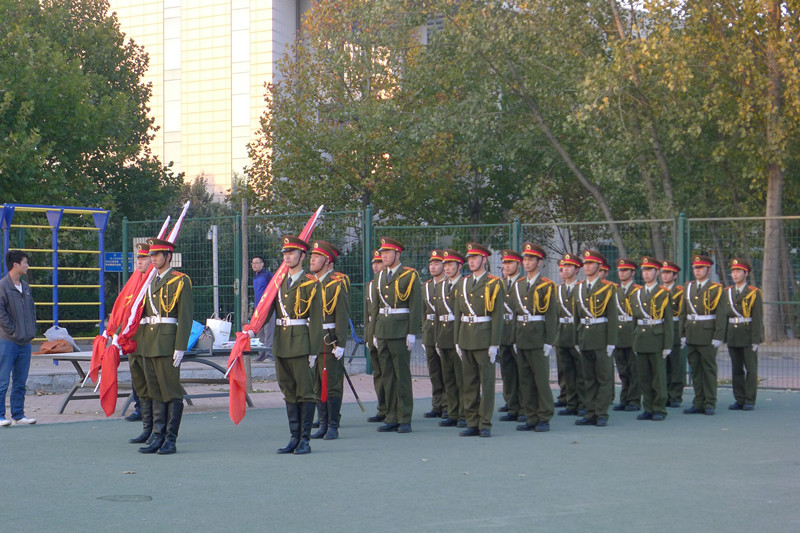 7点20分,仪式开始。国旗护卫队迈着整齐划一的步伐入场。伴随着雄壮的中华人民共和国国歌,鲜艳的五星红旗冉冉升起,这一刻感染了在场的每一位师生。