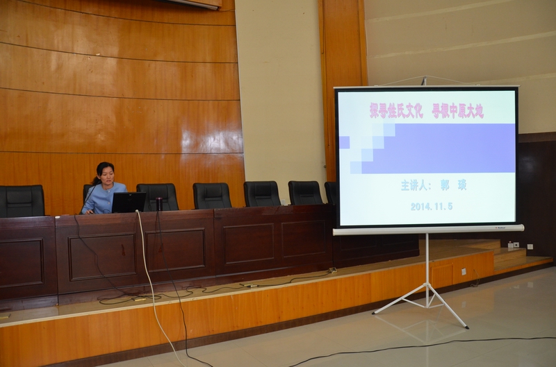 2014年11月5日下午2点,管理学院院长郭琰教授在学校学术报告厅举办了题为《探寻姓氏文化 寻根中原大地》的讲座。学校相关部门和管理学院的部分教师、13和14级旅游管理、景区开发与管理和酒店管理专业的学生一起聆听了此次讲座。