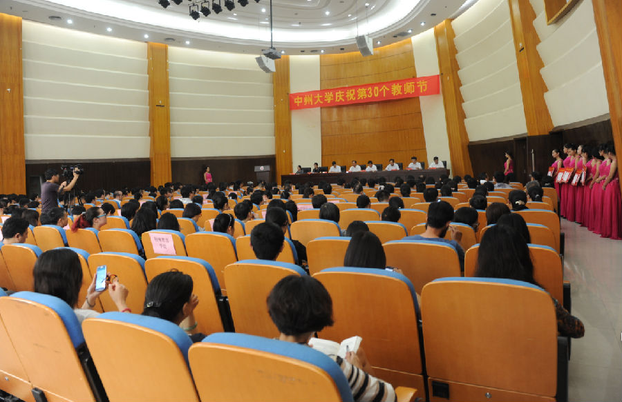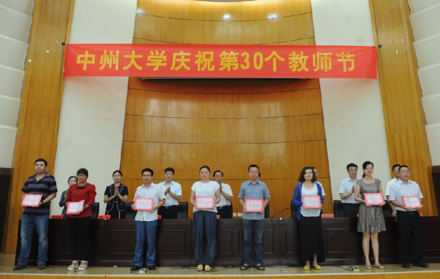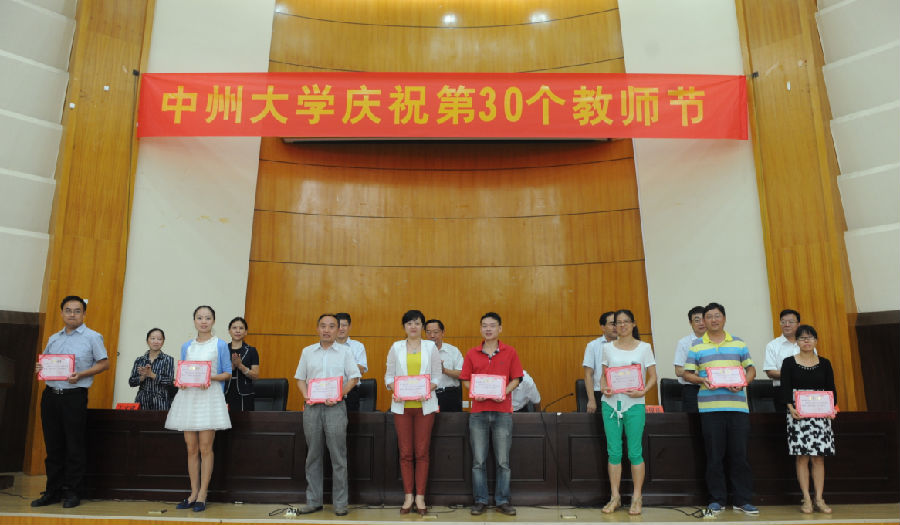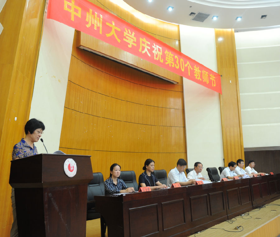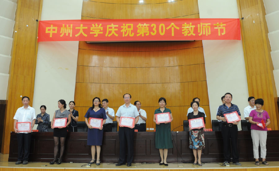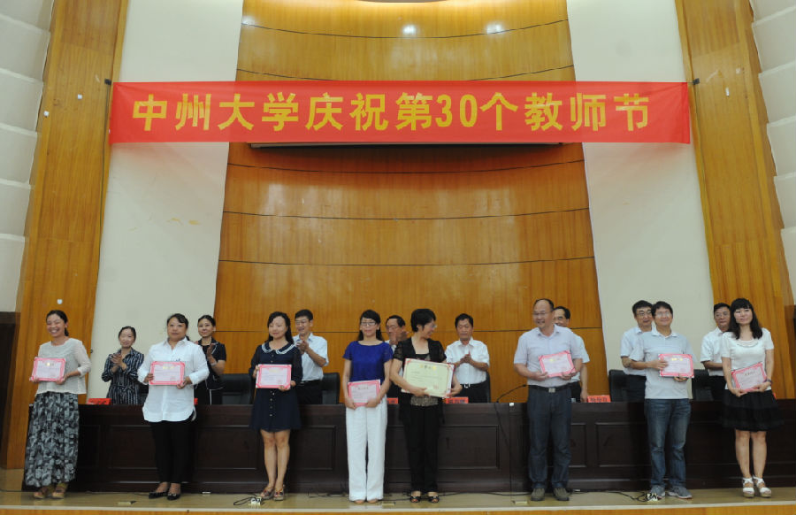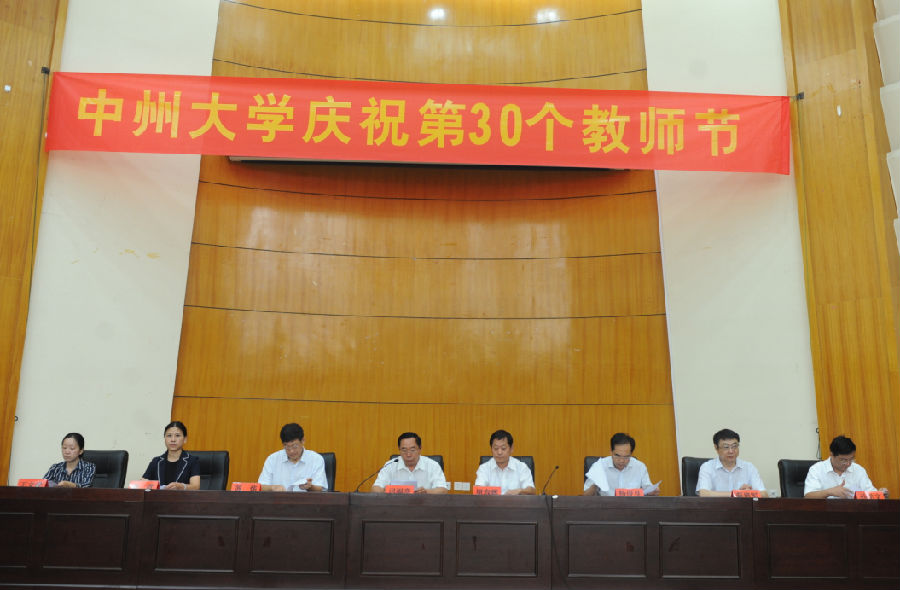 9月10日上午,中州大学2014年教师节庆祝暨表彰大会在学校行政楼学术交流中心举行。校领导英国威廉希尔公司,十大博彩公司、司福亭、杨俊良、苏炜、薛培军、李欣、孙学文,校长助理王文武出席大会,与师生代表600余人齐聚一堂共同庆祝自己的节日—第30个教师节。大会由校长司福亭主持。