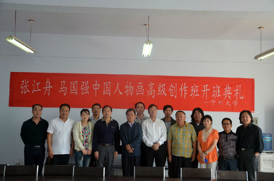 2014年9月21日上午,为期半年的“张江舟、马国强中国人物画高级创作班”在中州大学图书馆举行了开班典礼。