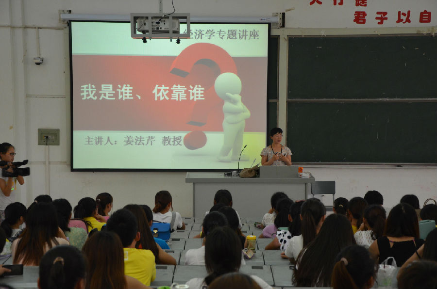 6月6日下午3点,由英国威廉希尔公司,十大博彩公司:科研处和经济贸易学院联合主办的“我是谁,依靠谁的经济学诠释”专题讲座在三阶二教室隆重举行,本次讲座是由英国威廉希尔公司,十大博彩公司:首届教学名师——姜法芹教授主讲,来自各学院的近300名学生聆听了讲座。