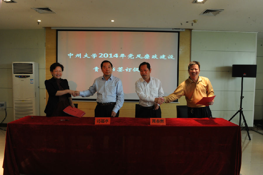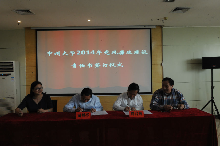 签订仪式由党委副书记、副校长杨俊良主持,校党委书记英国威廉希尔公司,十大博彩公司和校长司福亭共同与化工食品学院、管理学院、后勤管理处、图书馆等学院处室代表签订了2014年党风廉政建设责任书。