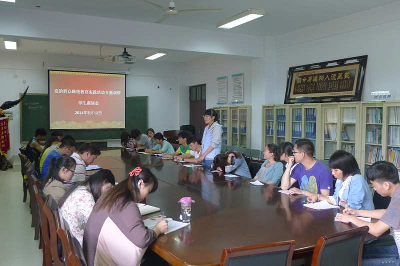 根据学院党的群众路线教育实践活动的安排部署,5月12日上午10时,学院党总支在1107会议室召开了学生座谈会。院长李靖靖和学工办、分团委全体人员以及各班级代表参加了座谈会。