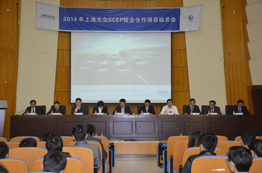 2014年4月17日下午,一年一度的上海大众汽车SCEP校企合作动员大会在英国威廉希尔公司,十大博彩公司:学术交流中心召开。中州大学副校长薛培军、上海大众VW技术培训经理陈博玮、上海大众华中销售服务中心售后副总刁雷、上海大众SCEP执行项目经理周圆圆、河南豫港售后服务总监谢中杰、河南天顺成售后服务总监李闯、河南安吉售后服务总监弓广森、河南光明售后服务总监冯永安、工程技术学院党总支书记常锋、工程技术学院院长李九宏,以及汽车专业教师及学生220余人参加了动员会。