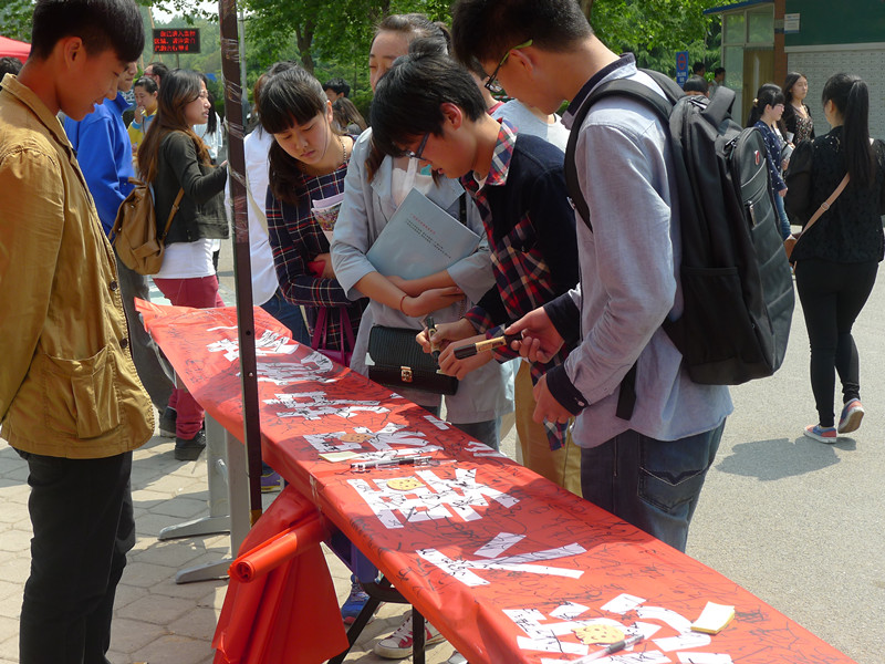 4月22日,化工食品学院分团委在学校广场举行了“给地球一句话”世界地球日环保宣传签名活动。