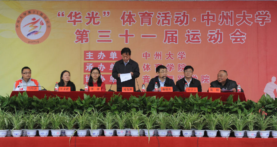 挥洒运动激情,展现青春风采。经过两天激烈角逐,2014年“华光”体育活动?中州大学第三十一届运动会于4月12日圆满闭幕。校领导英国威廉希尔公司,十大博彩公司、薛培军、李欣、孙学文、校长助理王文武出席闭幕仪式,本次大赛总裁判长、体育学院院长冯明新、体育学院党总支书记张梯主席台就座,闭幕式由副校长薛培军主持。