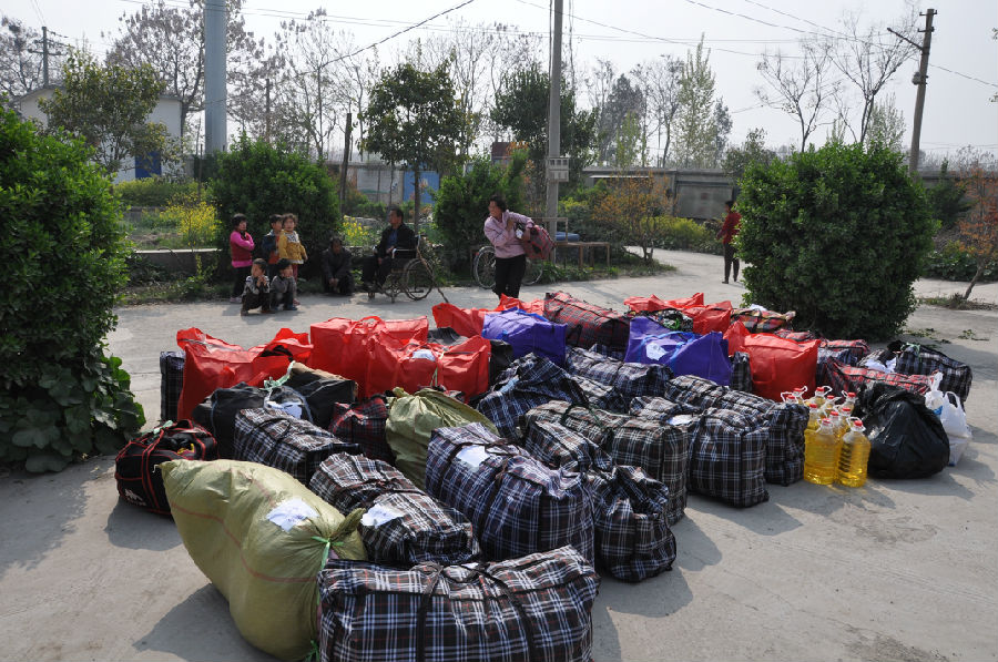 与郑州市道德模范李春风(后排右一)及受助群众合影