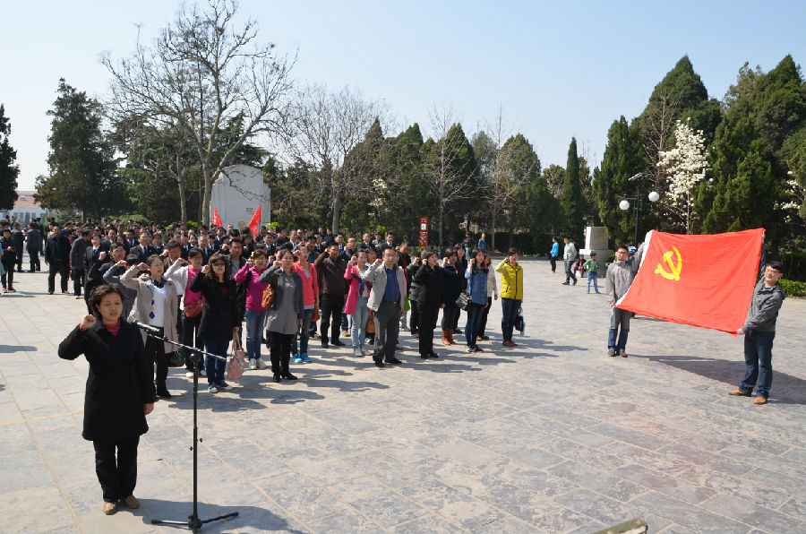 全体党员绕焦裕禄陵墓一周,瞻仰烈士陵墓