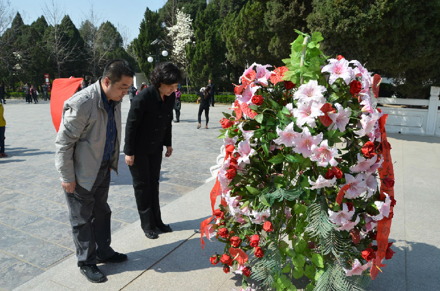 马林靖书记和仲岩院长向焦裕禄烈士敬献花篮