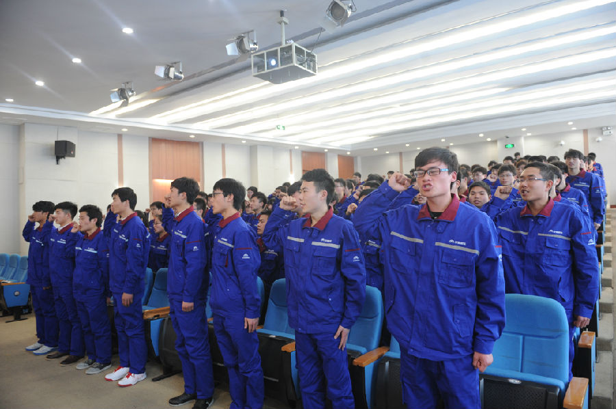 最后,王锋先生向中州大学工程技术学院授予“校企合作认证单位”证书;第二届宇通班学员在田川老师的带领下以“在校做一名优秀的学子,入司做一名合格的宇通人”举行了宣誓仪式。