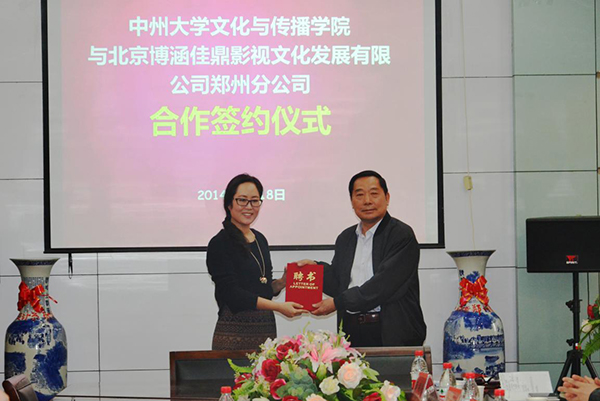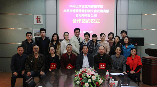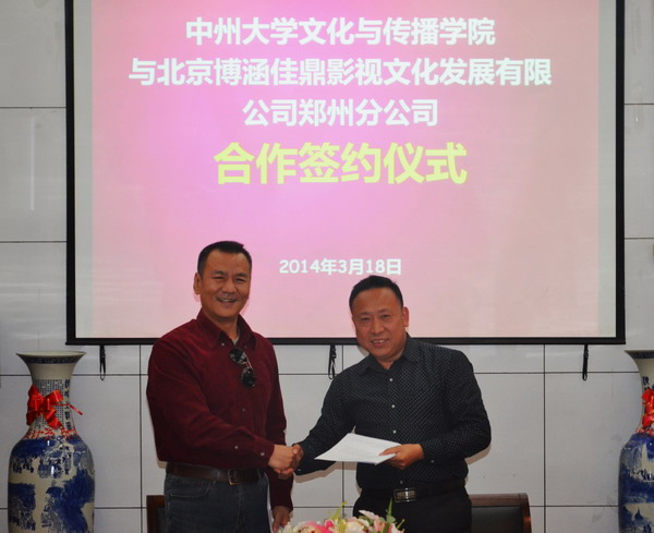 2014年3月18日下午,中州大学文化与传播学院与北京博涵佳鼎影视文化发展有限公司郑州分公司校企合作签约仪式在中州大学四号楼4505会议室成功举行。