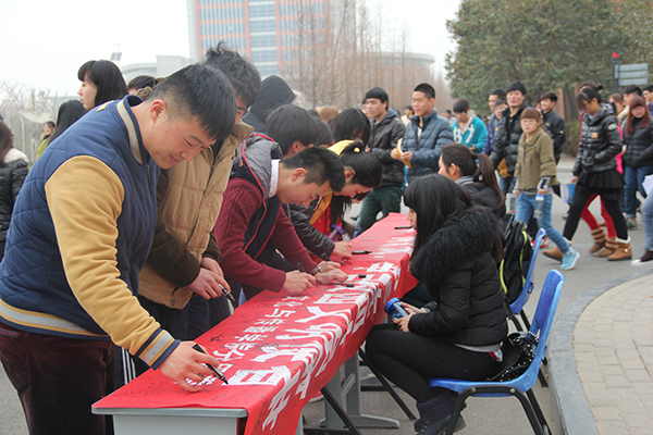 本次签名活动得到了同学们的积极响应,在布置活动现场的过程中得到同学们的热情帮助,并询问活动具体内容。活动正式开始,同学们郑重地在横幅上签上了自己的名字。同学们表示:“这不仅是签个名字,更是雷锋精神的传承和延续”。签名活动结束后,工作人员把写满名字的宣传横幅悬挂在校园中,时刻提醒每一个同学身体力行,牢记雷锋精神并传承发扬下去。
