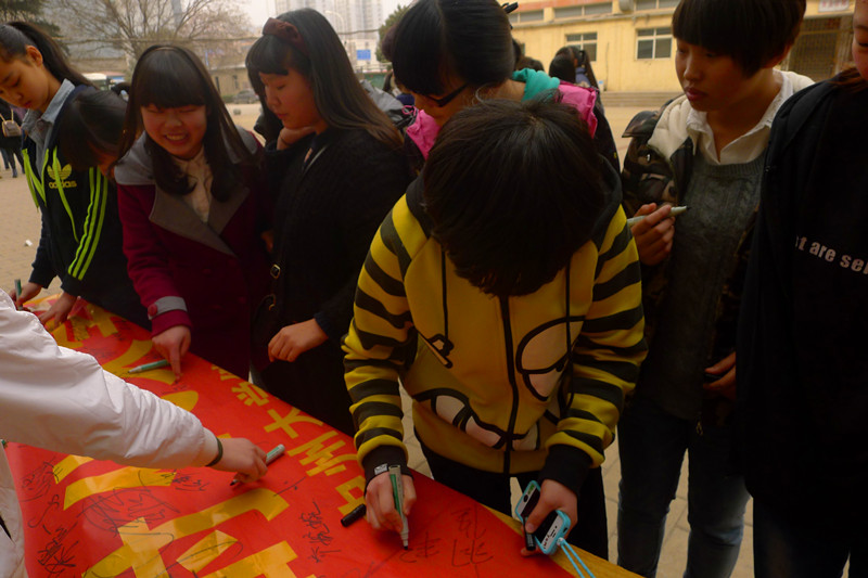 3月11日中午12时,在中州大学航海校区,一号教学楼前,继续教育学院举办了以“学习雷锋精神,做无愧时代大学生”为主题的签名活动。