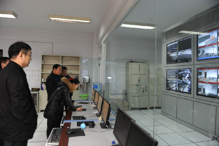 校领导通过视频监控系统巡查期末考试情况