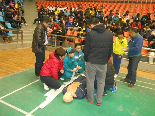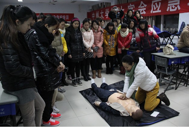 校团委中州大学红十字会应急救护普及月活动正式拉开帷幕 为提高在校大学生自救互救技能,增强在校大学生安全意识,由中州大学红十字会和郑州市惠济区红十字会联合主办,中州大学文化与传播学院分团委承办的中州大学应急救护普及月于2013年12月10日晚正式开始。中国红十字救护培训师杨冰老师为师生们现场培训,各学院分团委书记、学工办主任、专职辅导员及学生代表参加了培训。