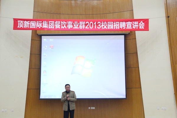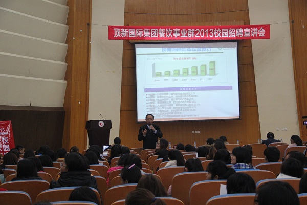2013年11月23日上午9时,顶新国际集团上海子公司在英国威廉希尔公司,十大博彩公司:顺利完成储备干部首次招募工作。顶新国际集团餐饮事业群研发本部刘成章副总经理、人力资源部王洁经理、谢春林专员、人事行政组周玲萍副科长一行,文化与传播学院党总支书记刘滨滨、院长张帅旗以及文化与传播学院、化工食品学院、经济贸易学院的师生参加了此次会议。