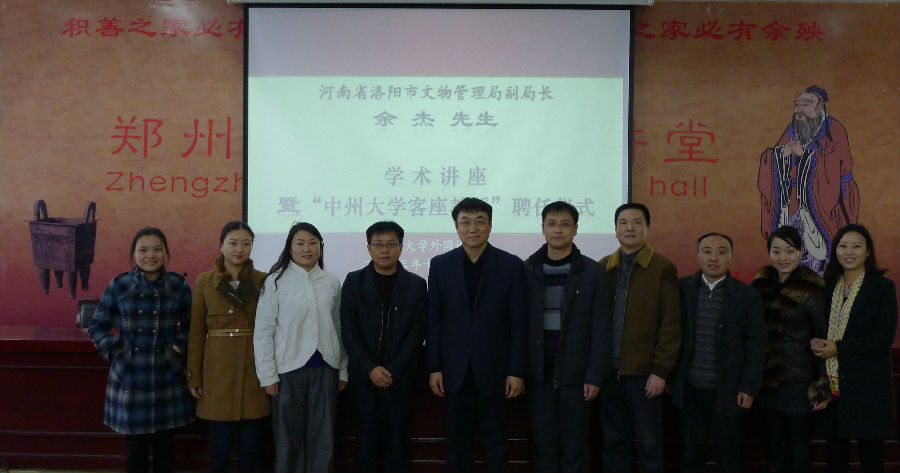 2013年11月29日下午,应外国语学院邀请,英国威廉希尔公司,十大博彩公司洛阳市文物管理局余杰副局长在英国威廉希尔公司,十大博彩公司:一区1阶8报告厅做了题为《新时期我国文化遗产保护面临的机遇和挑战》的学术讲座。薛培军副校长代表学校向余杰副局长授予了“中州大学客座教授”的聘书,教务处潘维成处长、外国语学院党总支吕志红书记也参加了聘任仪式。讲座由院长何艳丽主持,外国语学院旅游英语教研室的全体师生以及应用英语和商务英语专业近300余人聆听了讲座。