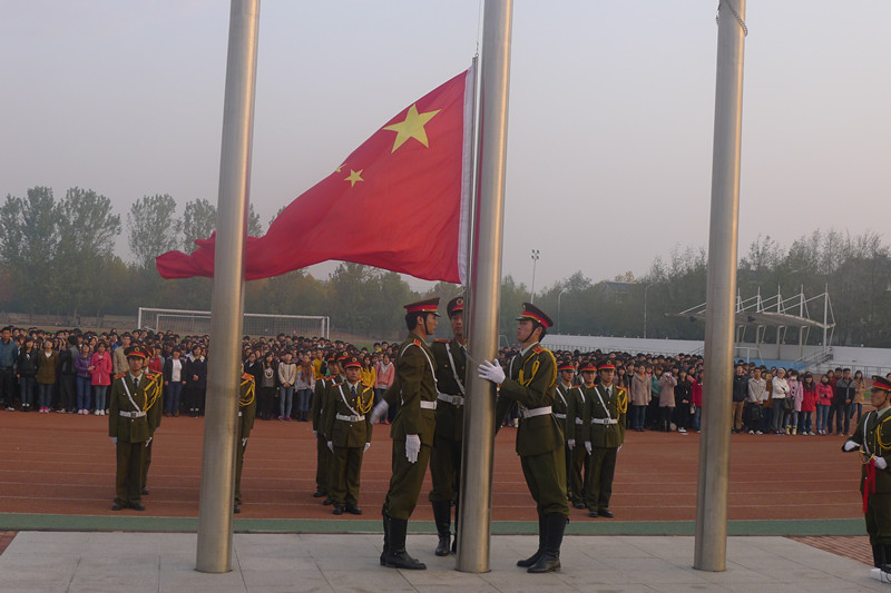 7时20分主持人宣布升旗仪式正式开始,随后中州大学国旗护卫队踏着整齐的步伐进入操场,庄严而肃穆。紧接着,伴随着嘹亮的国歌声,五星红旗冉冉升起,国歌沐浴着清风弥漫整个校园,全体师生行注目礼。升旗完毕,化工食品学院2013级学生代表牛冬晓进行了国旗下演讲,她号召同学们“学会感恩”,努力做一名感恩父母,感恩社会,常怀感恩之心的大学生。