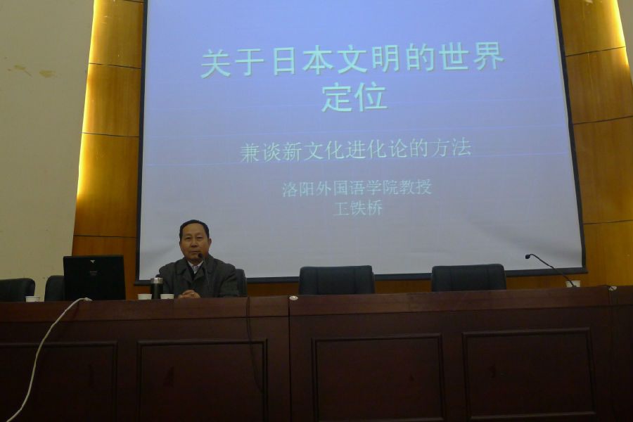 11月22日下午,应外国语学院邀请,解放军外国语大学王铁桥教授在中州大学学术报告厅作了主题为“日本文明的世界定位”的讲座。外国语学院第二外语教研室的全体教师、商务日语专业的全体学生聆听了讲座。