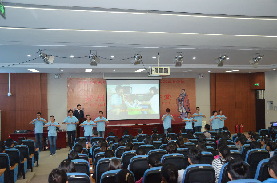 接下来,本次道德讲堂严格按照《郑州市“道德讲堂”活动实施方案》,依次进行自省、唱歌曲、诵经典、学模范、发善心、送吉祥、向“德”鞠躬、一堂一善事等八个流程。