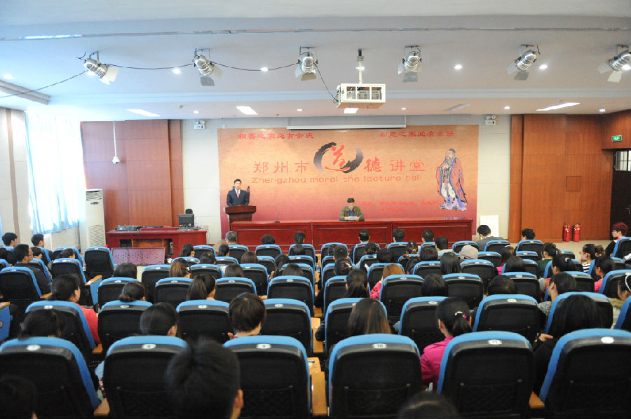 10月28日下午2:00,由中州大学党委宣传部主办、经济贸易学院承办的中州大学道德讲堂在学生活动中心一区1阶8举行。郑州市惠济区文明办副主任尹怀新、中州大学校长司福亭、党委副书记苏炜、宣传部部长张晓梅、经济贸易学院党总支书记马林靖、宣传部副部长王伟龙、经济贸易学院党总支副书记李爱华等领导出席本次道德讲堂。来自经济贸易学院的近300名师生也参加了活动。