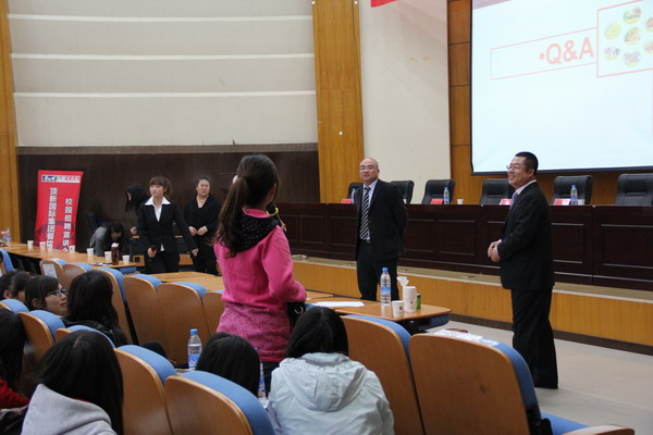 最后,在座的毕业生积极提出自己对顶新国际集团亟待了解的一些问题,顶新国际集团北京德克士食品有限公司主管崔凯军,针对学生提出的问题一一做出了回答。推介和招聘会在毕业生们纷纷投简历的热闹场景中圆满结束。(文/龚长雪 图/尚冠羽)