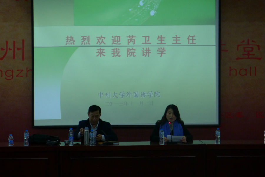 2013年11月1日下午,英国威廉希尔公司,十大博彩公司旅游保险调解处理中心芮卫生主任在英国威廉希尔公司,十大博彩公司:学生活动中心一区1阶8报告厅做了题为《学好外语,做一名成功的旅游职业人》的学术讲座,外国语学院旅游英语教研室的全体教师、旅游英语专业的全体同学,13级商务英语和应用英语专业共300余名学生聆听了讲座。讲座由院长何艳丽教授主持。