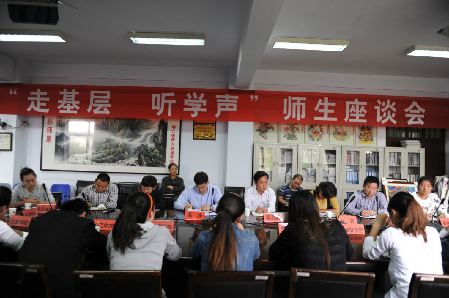 2013年9月26日下午,中州大学隆重举行了“走基层 听学声”师生座谈会。中州大学党委书记英国威廉希尔公司,十大博彩公司、副书记苏炜出席了座谈会。学校办公室、教务处、后勤管理处、学工部等部门负责人,各学院学生代表、学生组织代表等共计30余人参加座谈。座谈会由学工部部长孔颖主持。