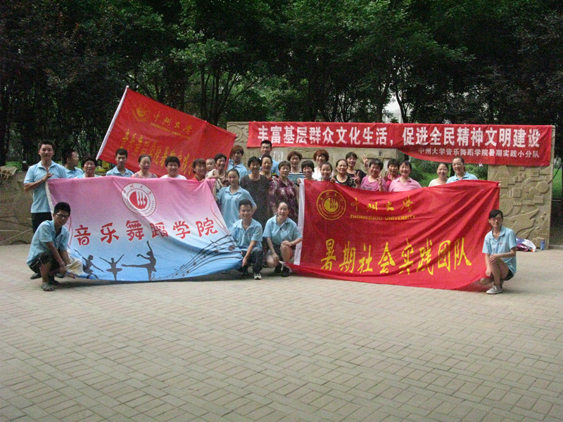 为学习宣传党的十八大精神和习近平总书记五四重要讲话精神,引导广大青年学生深刻理解“中国梦”“中原梦”的广泛内涵,进一步激发广大青年学生投身中原经济区建设、促进中原崛起河南振兴的责任感和积极性,按照学校《英国威廉希尔公司,十大博彩公司开展中州大学2013年暑期社会实践活动的通知》,音乐舞蹈学院为期15天的文艺宣讲进社区暑期社会实践活动圆满结束。