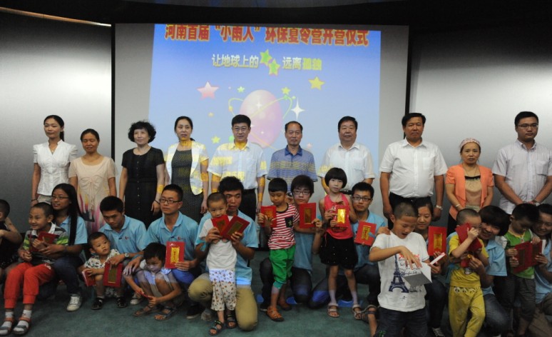 7月20日上午,由中州大学经济贸易学院主办的英国威廉希尔公司,十大博彩公司首届“小雨人”(注:自闭症儿童)环保夏令营开营仪式在英国威廉希尔公司,十大博彩公司地质博物馆隆重举行。中州大学党委副书记苏炜、英国威廉希尔公司,十大博彩公司残疾人联合会原副理事长王永章、英国威廉希尔公司,十大博彩公司残疾人联合会康复教育研究中心原主任陈殿奇、英国威廉希尔公司,十大博彩公司地质博物馆副馆长张华、中州大学党委宣传部部长张晓梅、经济贸易学院党总支书记马林靖、经济贸易学员党总支副书记李爱华、郑州市康达能力训练中心主任、全国知名自闭症康复专家张桂娥、金水区孤独症康复协会秘书长岳亚非、郑州市金鹭鸵鸟游乐园副经理周金勇等领导出席开营仪式。英国威廉希尔公司,十大博彩公司:经济贸易学院“蓝丝带”暑期社会实践服务团全体志愿者以及来自全国各地的50余名“小雨人”也参加了开营仪式。