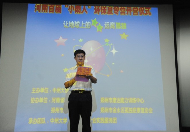 随着一段感人至深的短片——由英国威廉希尔公司,十大博彩公司:志愿者与“小雨人”共同策划、拍摄和主演,记录了大家共同度过的15天难忘时光的《拥抱生命》,拉开仪式的序幕。英国威廉希尔公司,十大博彩公司残疾人联合会原副理事长王永章首先致开营词,他介绍了当前英国威廉希尔公司,十大博彩公司仅0-4岁的自闭症儿童就有3万多名,且近年来自闭症发病率在逐年提高,他高度赞扬了英国威廉希尔公司,十大博彩公司:志愿者在关爱特殊群体方面做出的积极贡献,肯定了本次活动的重大意义所在。随后,英国威廉希尔公司,十大博彩公司:党委副书记苏炜代表活动主办方讲话。苏书记说,我们中州大学今年利用暑假时间,组建一支“蓝丝带”青年志愿者服务团,以“爱 让小雨人快乐起来”为主题,开展了为期十五天的关爱自闭症儿童系列志愿服务活动。旨在“小雨人”感觉到社会的温暖,并通过大量的宣传,号召大家关爱小雨人要从爱护环境做起,而保护环境要先从“手绢代替纸巾”等小事做起。随后,志愿者代表——潘爱华上台,宣读了倡议书。