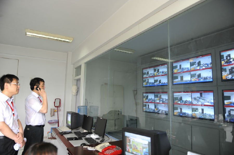 薛校长对于巡视过程中发现的问题,联系相关部门立即解决,并通过监控室观看各考场的考试情况。
