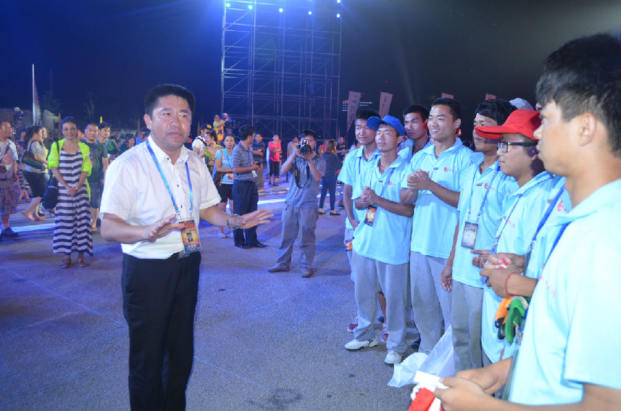 郑州市委宣传部副部长、郑州市电视台台长李平慰问志愿者