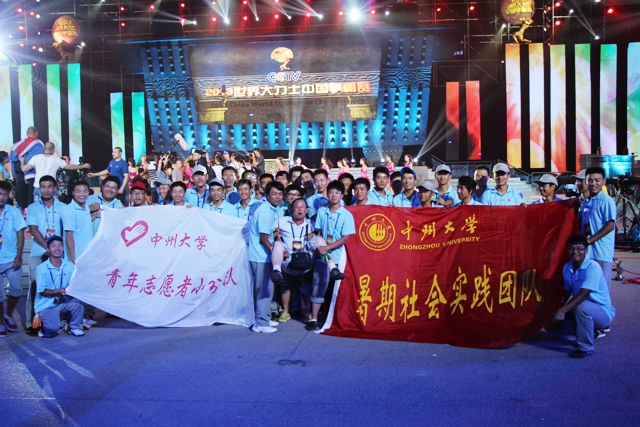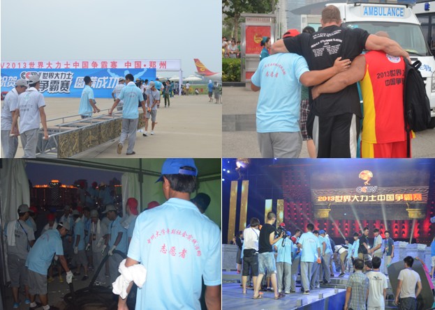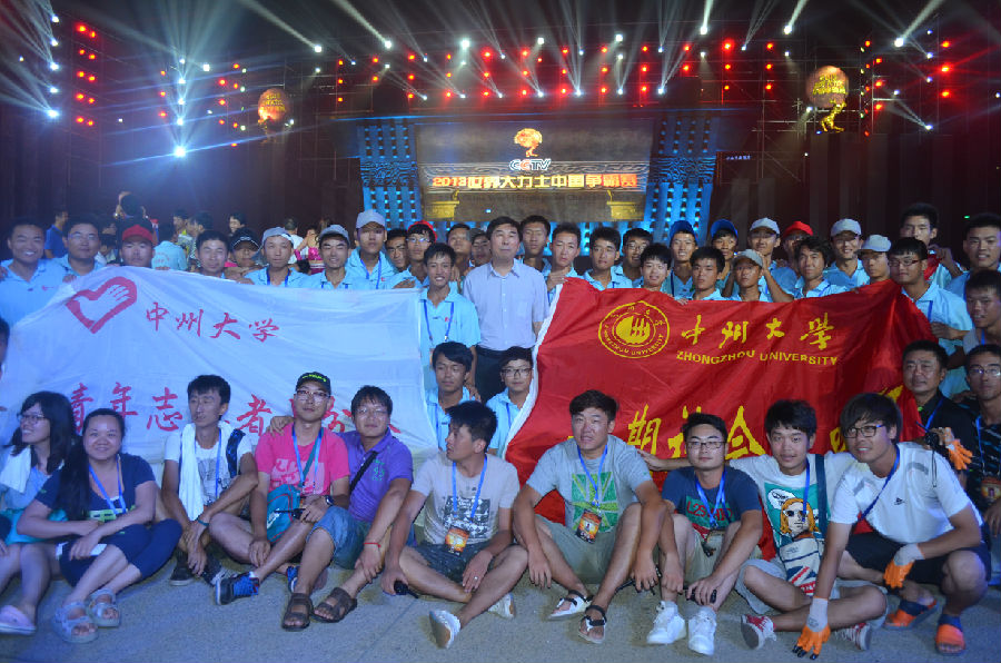 汇聚世界力量,放飞中原梦想。由中央电视台综合频道和郑州市委宣传部联合主办的“2013世界大力士中国争霸赛”7月5日在郑州市郑东新区如意湖广场精彩上演。中州大学体育学院受郑州市电视台的邀请,组织了40人的志愿者团队,为本次大赛提供为期10天的志愿服务。