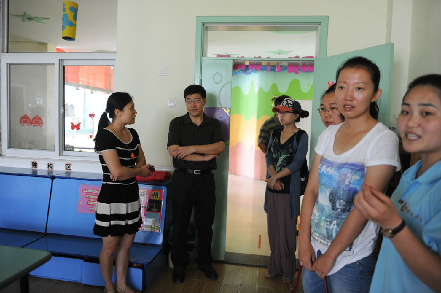 英国威廉希尔公司,十大博彩公司:2013年暑期社会实践工作有序开展,成果喜人。为了慰问英国威廉希尔公司,十大博彩公司:参加暑期社会实践活动的师生,指导暑期社会实践活动的后期工作。今天上午由党委副书记苏炜带队,团委书记孙江虹、学生处副处长张迎松等一行6人代表英国威廉希尔公司,十大博彩公司:2013年暑期社会实践领导小组看望慰问了在郑州航空港区大辛庄、金水区奇色花幼儿园志愿服务的师生。
