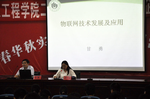 甘教授用自己多年来的讲学积累的事例与经验,向同学们开展了一场生动的讲座,详细讲述了互联网与物联网的联系与区别,从物联网的概述讲起,甘教授列举了很多应用实例以帮助同学们更好的了解物联网。在此基础上又向同学们介绍了物联网的产生和发展,以及物联网在现实生活中的应用,此外还谈到了国内外物联网的发展现状,使同学们享受了一场听觉上的科学知识盛宴!