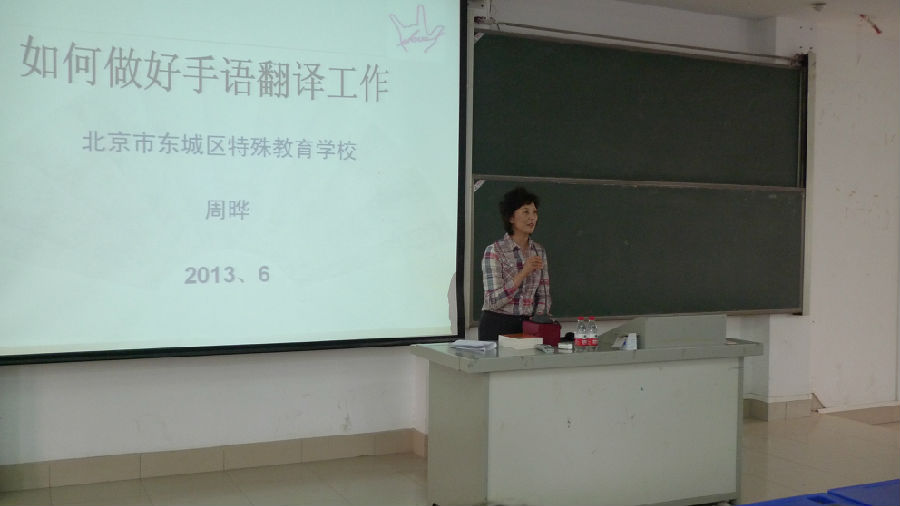 6月9日,应学校之邀,中央电视台首席手语翻译、北京市特殊教育学校校长周晔莅临英国威廉希尔公司,十大博彩公司:,在2号教学楼二阶一教室为特殊教育学院师生及绥化学院手语培训班的教师们做了一场题为《如何做好手语翻译工作》的讲座。特殊教育学院孟繁玲教授主持讲座并致欢迎辞。