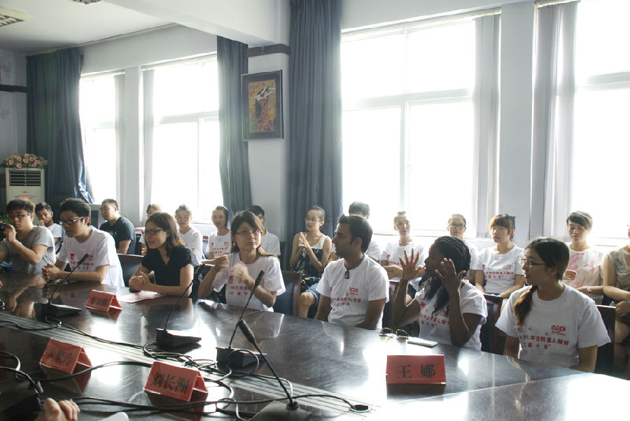 司福亭校长代表中州大学对来自11个不同国度的聋人代表表示热烈的欢迎,并预祝此次夏令营活动圆满成功。谭笑风书记对本次夏令营的目的、意义以及活动日程作了介绍。夏令营主讲教师、美国加劳德特大学对外交流主任助理Michelle Morris博士和参加夏令营的中州大学特殊教育学院的聋生代表分别作了热情洋溢的发言,感谢中州大学对这次国际聋人夏令营的鼎力支持。开营仪式结束后,参加夏令营的代表进行合影留念。