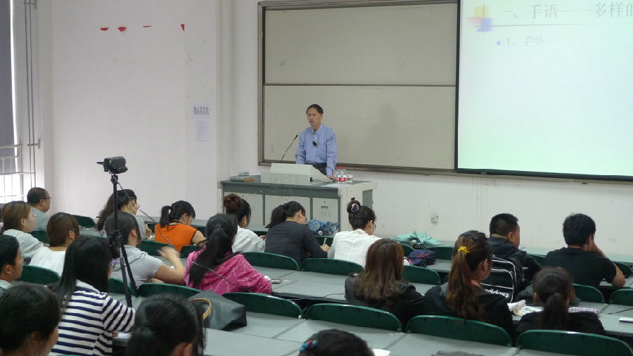 讲座中,顾教授结合自己在特殊教育和手语研究方面的成果和经历,描述了手语概念的嬗变,回顾了国家政策及在手语规范化方面所做的工作,介绍了手语语言学的研究趋势,提出对于手语翻译职业的思考及对手语教学的建议。最后,顾教授指出,作为一种语言现象,手语使用者之众,变体之多,变化之快,对我们在熟悉、掌握、运用等方面将是一个漫长的过程。需要在今后的教学、沟通、研究等方面的共同努力。