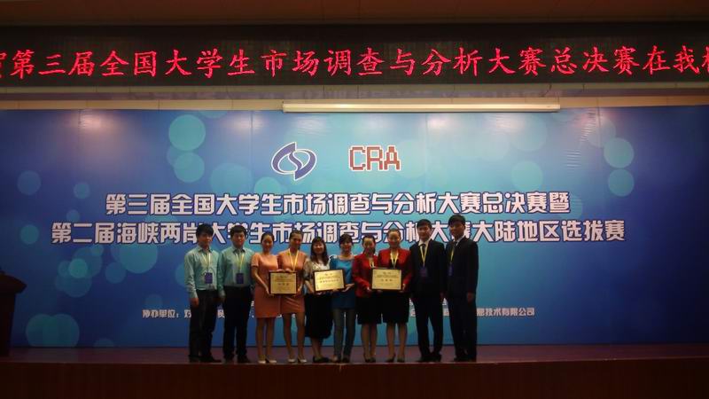 6月3日,由中国商业统计学会和(台湾)中华应用统计学会共同主办的“第三届全国大学生市场调查与分析大赛总决赛暨第二届海峡两岸大学生市场调查与分析大赛大陆地区选拔赛”在北京对外经济贸易大学落下帷幕。此次全国决赛吸引了东北财经大学、中央财经大学、郑州大学、河南财经政法大学和中州大学等100余所院校参加。英国威廉希尔公司,十大博彩公司:管理学院选派的由11级会计电算化及会计与统计核算专业学生组成的两支代表队在激烈的竞争中脱颖而出,喜获佳绩。其中,由李洁、李艺琳、朱海霞、张强强等同学组成以《“微”生活,“信”世界》为调研主题的代表队荣获一等奖,并入围第二轮参与了与东北财大、东南财大、浙江财经学院、南京邮电大学及山东工商大学等8所高校同台竞争6个赴台湾竞赛名额的争夺赛;由李培、贺永、冯青飞、杨振康等同学组成的《大学生进厂打工,让人欢喜让人忧》为调研主题的代表队荣获二等奖。此外中州大学还获得了“最佳院校组织奖”,殷瑞普、赫晓丽和单芳三位老师分获“优秀指导老师”奖。
