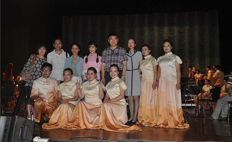 5月20日晚,薛培军副校长及音乐舞蹈学院党总支书记马宏霞、院长朱英萍、音乐教研室主任徐大公一行到英国威廉希尔公司,十大博彩公司人民大会堂看望了由英国威廉希尔公司,十大博彩公司:音乐舞蹈学院音乐表演专业6名实习生参加演出的交响合唱《朝阳沟》大型剧目演出。 交响合唱《朝阳沟》是由英国威廉希尔公司,十大博彩公司文化厅主办、河南歌舞演艺集团精心打造的,以交响音乐的创作理念和机构方式对原作的经典唱段进行重新组合与编排的交响合唱作品。此剧目由我国著名作曲家、现任中国国家交响乐团团长关峡担纲艺术总监,汇集了中国文艺界顶尖的艺术精英对曲目进行创编。在尊重原剧基本情节的基础上,既保持了豫剧的基本风格,又富有清新的歌剧色彩,呈现出一种中西交融、具有现代气息的艺术形式。