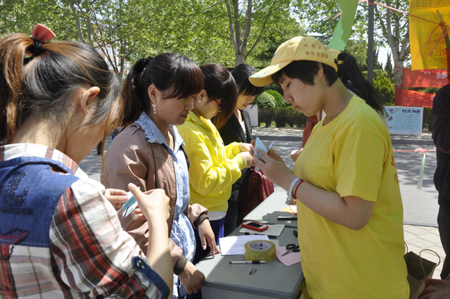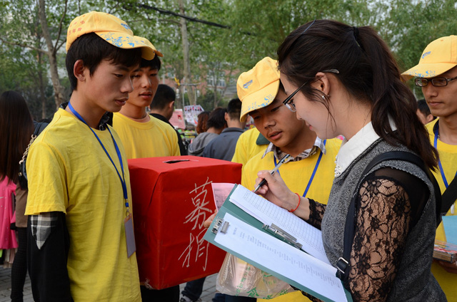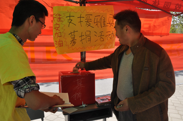 2013年4月20日早上8点02分,四川省雅安市发了生7.0级地震。信息工程学院学院学生党支部、分团委、学生会第一时间组织开展了向雅安地震公益募捐的活动。以学生党员、分团委、学生会干事组成的募捐团队走上街头,深入国基生活区、小吃街、陈寨等区域不断向人们发出倡议。通过同学们的不断努力,共募得善款2000余元。募捐活动结束后,信息工程学院分团委、中州大学创业实践社团、中州大学校广播站于周五下午举行了“纸鹤传情,祈福雅安”的祈福活动,吸引了很多同学参加。同学们把亲手折叠的纸鹤写上自己的祝福,悬挂在一起,祈福地震灾区人民平安。