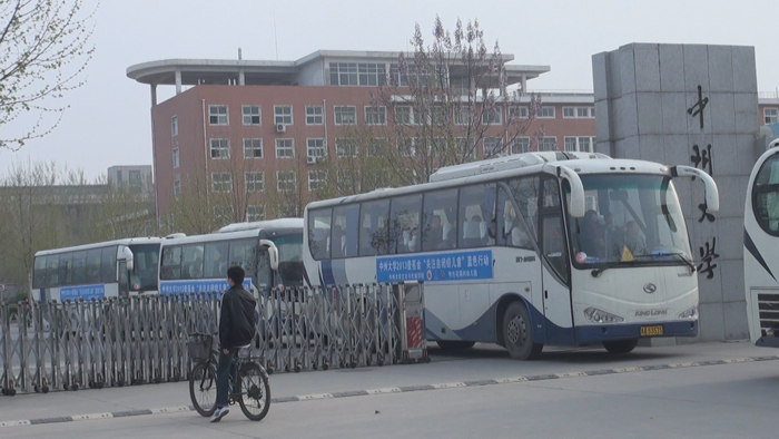 校车悬挂条幅倡议“关爱自闭症儿童”行动