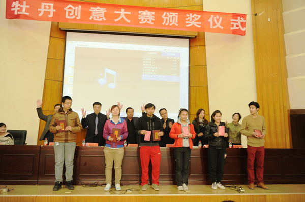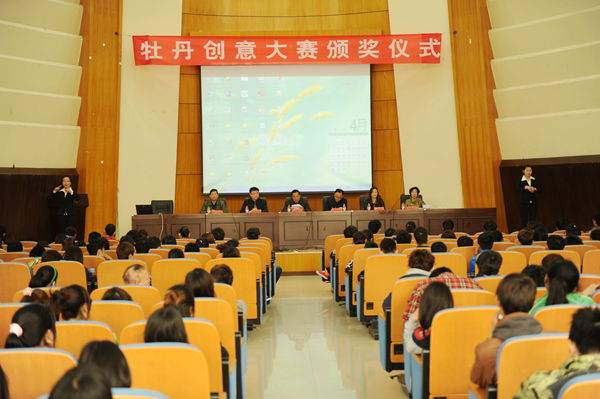 颁奖典礼在欢快的乐曲声中进行,获奖学生代表进行了发言。本次“牡丹创意设计大赛”共设奖金11000元,其中一等奖1名,奖金5000,二等奖2名,奖金2000元,入围奖10名,奖金200元。(图:王伟龙)
